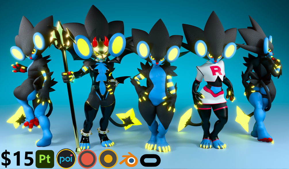 V1.1.3, Added Halloween outfit with trident, *Will require substance painter since the UV's are packed for efficiency *. This's also a fully separate version from the base Luxray and the outfit is modeled onto the body. Will put out a version that will have the other option later. Substance files included already along with blend files